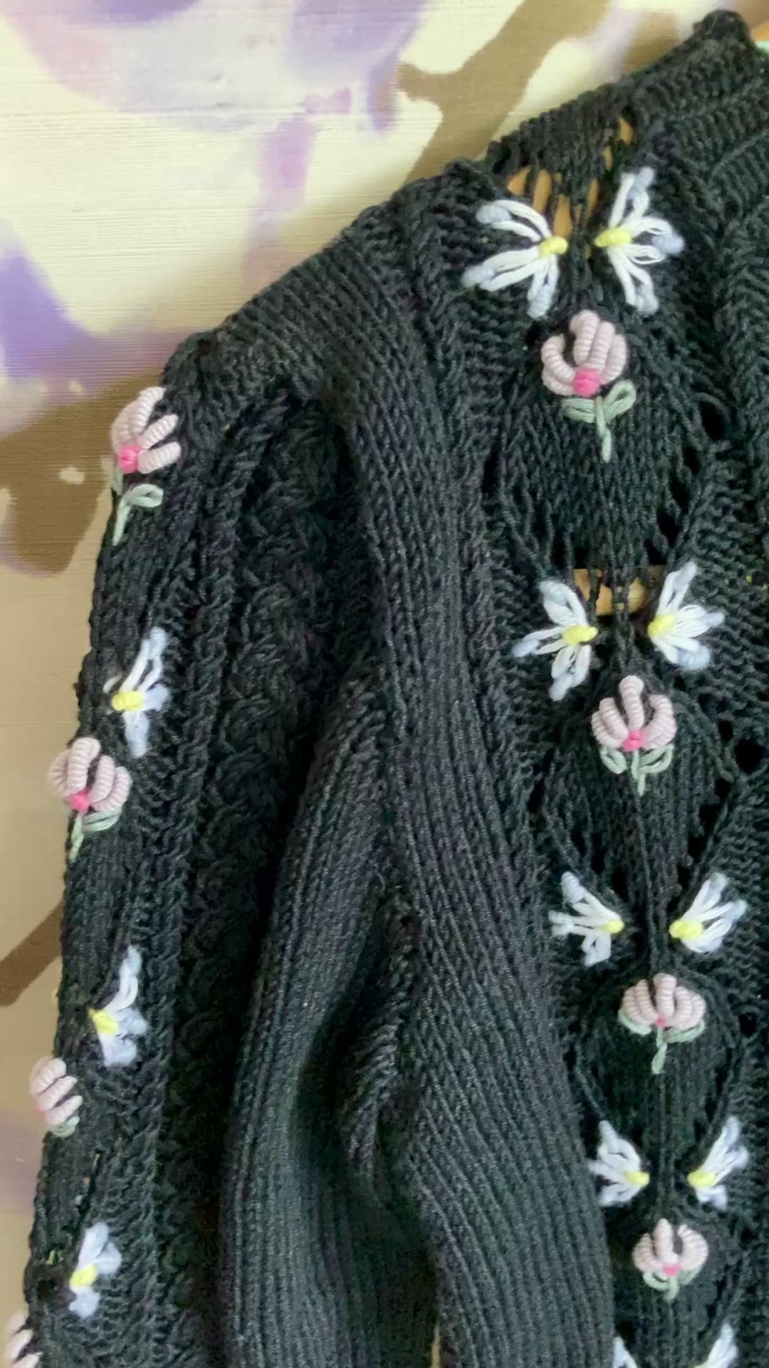 The IRMA short sleeve top is a refined piece, meticulously hand-knitted from mercerized cotton yarn for a smooth, elegant finish. Its delicate flower embroidery adds a sophisticated touch, making it a timeless addition to your wardrobe.